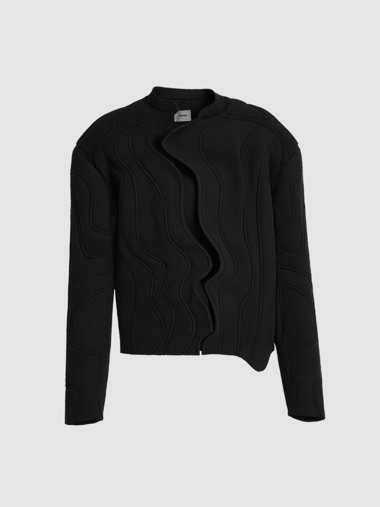 The Ripple Jacket is crafted from premium cotton twill and built from multiple curved panels, engineered to create its sculpted wavy surface. Complex to assemble and extremely demanding to sew, each piece is constructed with precision to maintain its shape and flow.